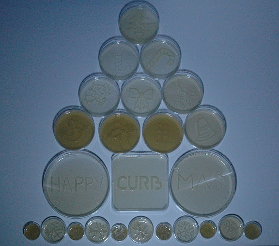 Pero nuestros dos ídolos infantiles no estaban satisfechos con todo lo mostrado hasta ahora y han decidido felicitarnos estas Navidades con un árbol de Navidad muy especial. A pesar de que la bioluminiscencia es un fenómeno muy extendido en todos los niveles biológicos (hongos, protistas unicelulares, celentéreos, gusanos, moluscos, cefalópodos, crustáceos, insectos, equinodermos, peces…), el reino de las bacterias destaca sobre todos los demás. Por ello nuestros dos ositos se pusieron en contacto con científicos de una conocida empresa y han utilizado la bioluminiscencia natural de ciertas bacterias para crear composiciones de tema navideño.