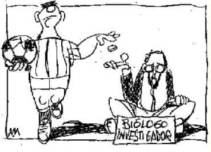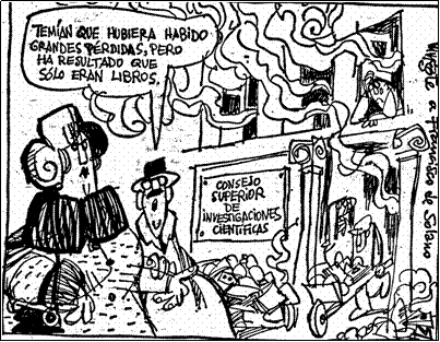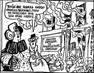 Sencilla y elegante entrada, maravillosa ilustración con trazos de Mingote y un final que da idea de lo poco que se avanza en cultura científica en este país. Mientras el resto de Europa, al entrar en crisis, sube la dotación para investigación, aquí…sin palabras.