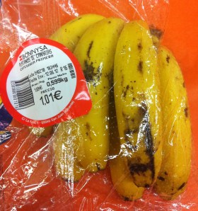Pero para acabar la faena voy a decirles por cuanto nos sale económicamente la broma del Actimel comparada con la del plátano. Un pack de 6 botecitos del producto estrella de Danone vale 3 euros, a 50 céntimos la unidad. En la misma superficie comercial una bolsa que contenía 6 plátanos costaba 1.01 euros, a 0,168 euros el plátano… ¡¡unas 3 veces menos!! En el caso de la marca blanca de Mercadona, el botecito de probiótico sale a 0.29 euros la unidad, 1.72 veces más caro que el plátano… sin comentarios.