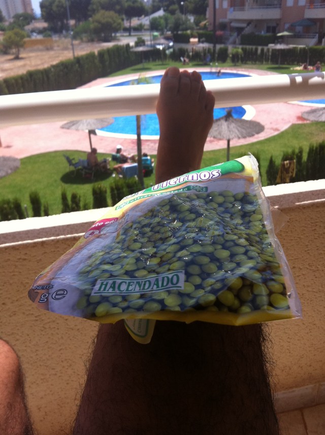 Muy bien con los guisantes congelados en esa rodilla sufriente. Que te recuperes del todo. Te echaré de menos y te recibiré gozosa.