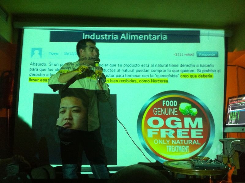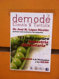 Llegaron las preguntas y, cómo ya es habitual cuando en una sola charla mezclo los alimentos funcionales, la quimiofobia y los transgénicos, hubo opiniones de todo tipo. Eso sí, aunque hay gente con cuyas intervenciones no estuve nada de acuerdo, debo reconocer que nadie se salió de tono y que en el Demodé se habló de Ciencia… que era lo que pretendía Javi, un gran divulgador científico.