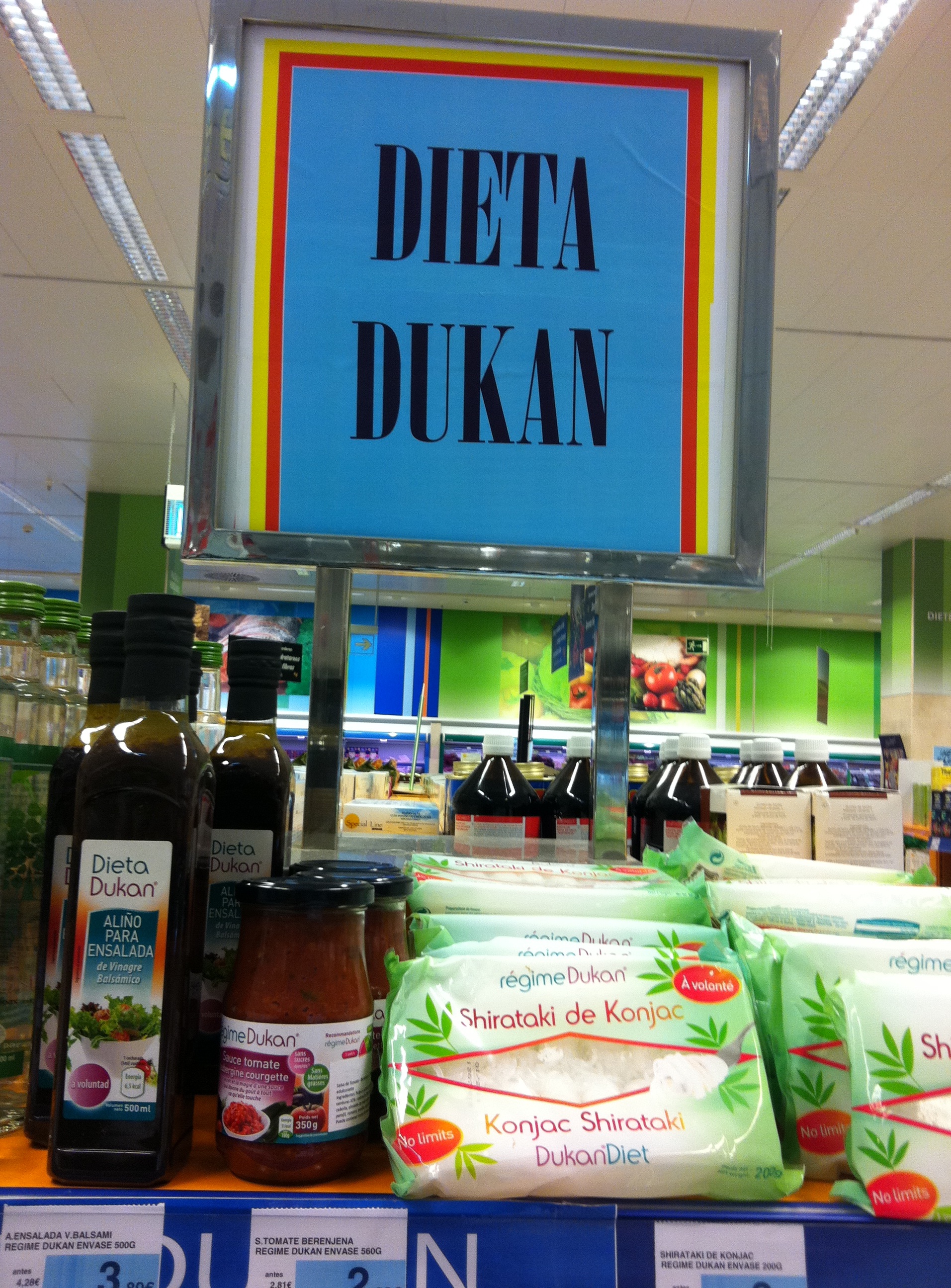 1He preguntado a varias personas relacionadas con este centro comercial y me han confirmado que la Dieta Dukan es un auténtico filón de ventas. En la actualidad el libro La Dieta Dukan ha vendido más de 10 millones de ejemplares en todo el mundo, ha sido traducido a 14 idiomas y se ha vendido en 32 países. Concretamente en España los libros escritos por este autor “No consigo adelgazar”, “El método Dukan ilustrado” y “Las recetas de Dukan” han ocupado los primeros puestos en los rankings de ventas de libros de no ficción durante el pasado año… y por ello El Corte Inglés ha decidido no solamente ponerlo en la sección de librería sino dedicarle en el supermercado una sección al amigo Dukan. ¿Es eso legal y ético? Veamos.