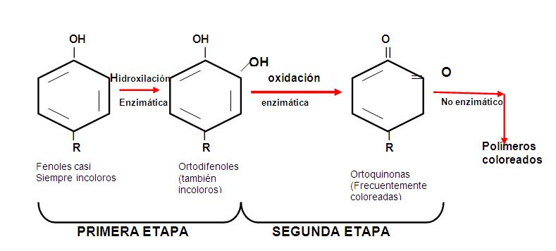 El pardeamiento enzimático es la reacción bioquímica responsable del oscurecimiento de frutas, verduras, etc. llevada a cabo, en sus dos primeras etapas, por la enzima polifenoloxidasa que se encuentra generalmente en los cloroplastos de las células vegetales. Dicha enzima, a través de dos etapas, convierte los monofenoles presentes en las vacuolas de dichas células en difenoles y, posteriormente, oxida estos difenoles a ortoquinonas. Finalmente, y a través de una reacción química, estas quinonas se convierten en esas manchas oscuras (melaninas) que todos hemos visto en uvas, manzanas, patatas, peras, etc. y que generalmente producen una sensación desagradable en el consumidor. Esas melaninas son las “costras” de los humanos”.