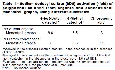 Bibliografía: Effect of organic farming practices on the level of latent polyphenol oxidase grapes. Núñez-Delicado, E., Sánchez-Ferrer, A., García-Carmona, F and López-Nicolás, J.M. Journal of Food Science. 2005, 1, 74.