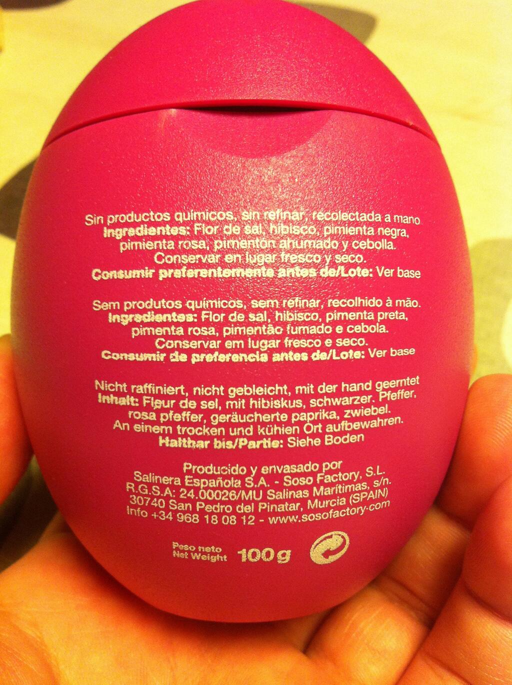 La sal sin productos químicos se las trae, pero que la sal esté producida y envasada nada menos que por «soso factory» es delirante