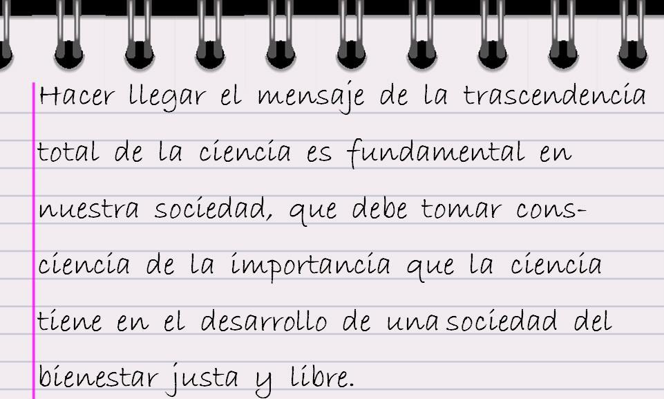 Hacer llegar el mensaje de la trascendencia total de la ciencia es fundamental en nuestra sociedad, que debe tomar consciencia de la importancia que la ciencia tiene en el desarrollo de una sociedad del bienestar justa y libre.