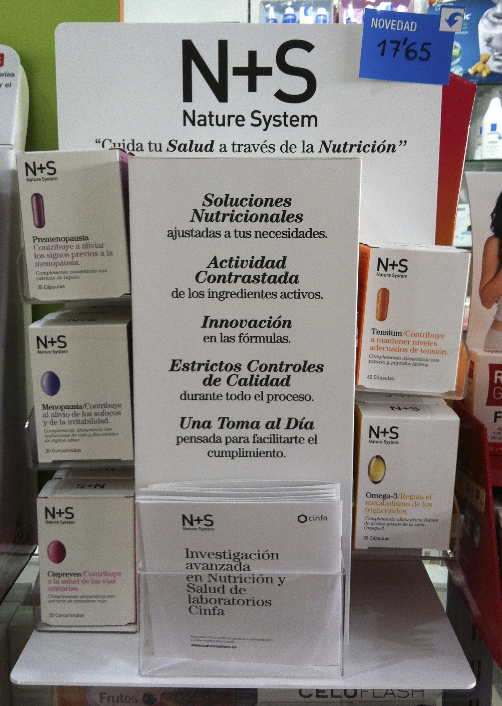 Según reza un folleto de  publicidad de Nature System (N+S) que circula por parafarmacias y chiringuitos similares, los nombres de estos 5 complementos, el compuesto estrella que poseen y el principal objetivo que persiguen son: