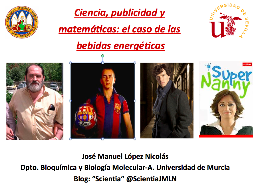 Tras ver a los matemáticos autoproclamarse más «puros» que sociólogos, psicólogos, biólogos, químicos y físicos, decidí, en un alarde de valentía o temeridad, desplazarme a Sevilla y coger el toro por los cuernos en una plaza de primera. Gracias a la invitación de mi amigo José A. Pradas (@eliatron) impartí una charla en la Facultad de Matemáticas de la Universidad de Sevilla que llevó por título Ciencia, matemáticas y publicidad: el caso de las bebidas energéticas” y que ustedes pueden ver pinchando en este enlace.
