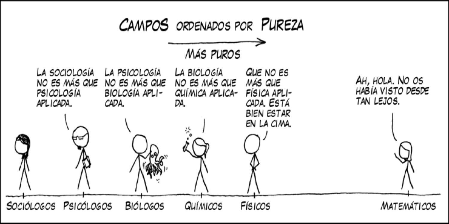 Pues bien, en aquella charla les dije a los matemáticos presentes que me parecía muy mal que nos trataran así al resto de científicos. Sin embargo, en vez de amilanarse, mis grandes amigos matemáticos me dieron sus secretas razones por las que veían menos puros al resto de científicos, incluidos «a los grandes químicos»… y, sinceramente, no estaban ausentes de argumentos.
