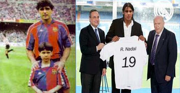 Como puedes ver en la imagen de la izquierda él sí que se preocupó por la correcta educación de Rafa…luego llegaste tú y pasó lo que se puede ver en la imagen de la derecha. Es el momento de sacar a tu sobrino del lado oscuro de la fuerza madridista… o si no que siga tomando Bonflex. O eso o me voy a hablar con Djokovic. ¿Trato?