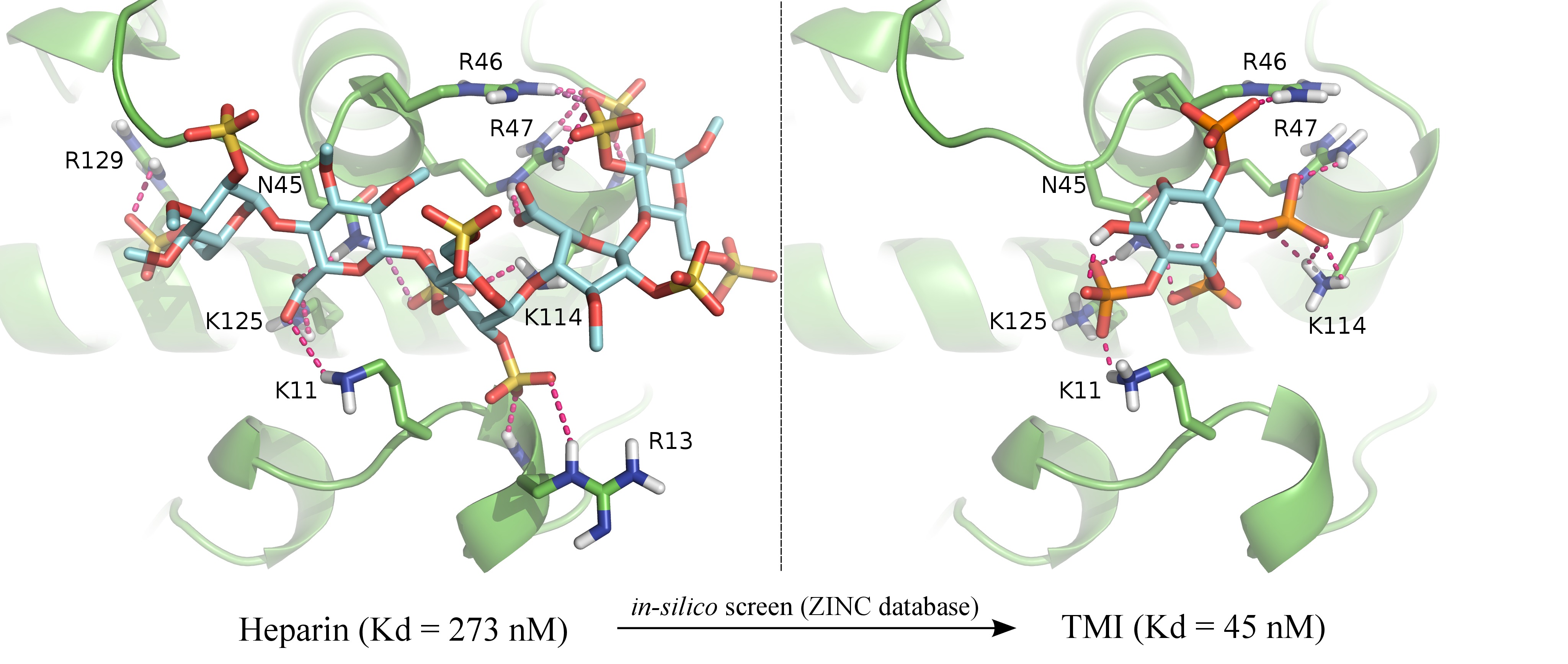 De entre los más de 13 millones de candidatos para activar la antitrombina la molécula seleccionada para acoplarse con gran fuerza a la antitrombina con una puntuación casi el doble que la heparina fue el D-myo-iositol 3,4,5,6-tetrakisphosphate (TMI), una molécula que además no presenta los efectos secundarios que puede tener la heparina sobre la salud. En teoría, los investigadores ya disponían del compuesto ideal para sustituir a la heparina como nuevo fármaco antitrombótico… pero aun no había acabado el proceso.
