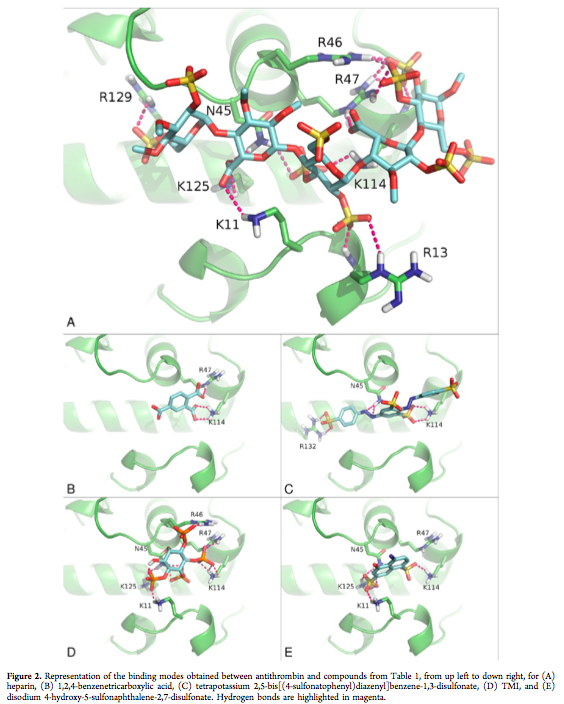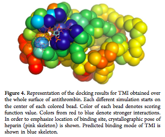 Como he comentado anteriormente son varias las proteínas (trombinas y antitrombinas) que están relacionadas con el desarrollo, prevención o cura de los infartos de miocardio, accidentes cerebrovasculares y embolias pulmonares. Pues bien, los responsables del artículo publicado en JMC decidieron diseñar nuevos fármacos con actividad frente a antitrombina superior a la que posee la heparina, lo que aumentaría la efectividad contra la formación de trombos.