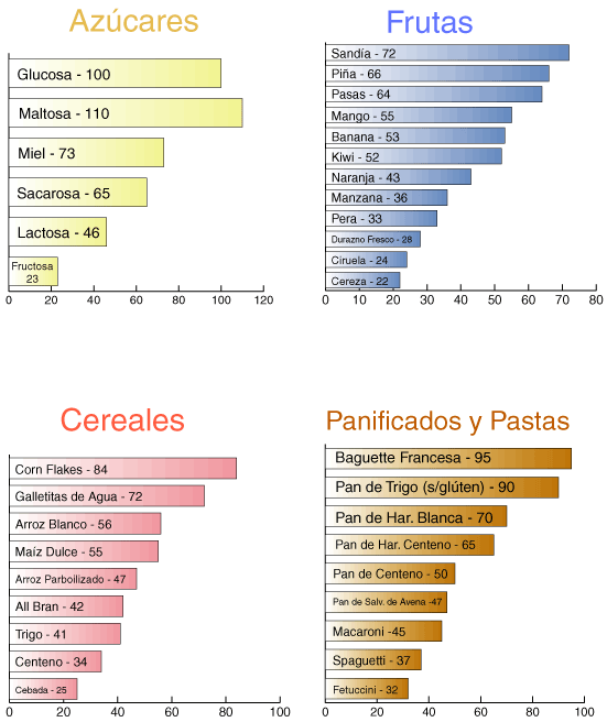 Pues bien, una manera de tener vigiladas las peligrosas subidas de azúcar en sangre es a través de una buena alimentación donde se tenga en cuenta el índice glucémico de los productos que consumimos. …¿y qué es el índice glucémico? Un parámetro que mide la cantidad y la rapidez con la que un alimento es capaz de aumentar la glucosa en la sangre ya que presenta valores altos para aquellos alimentos que incrementan de forma rápida los niveles de azúcar en la sangre y bajos para los alimentos que aumentan la glucemia más lentamente… fácil.