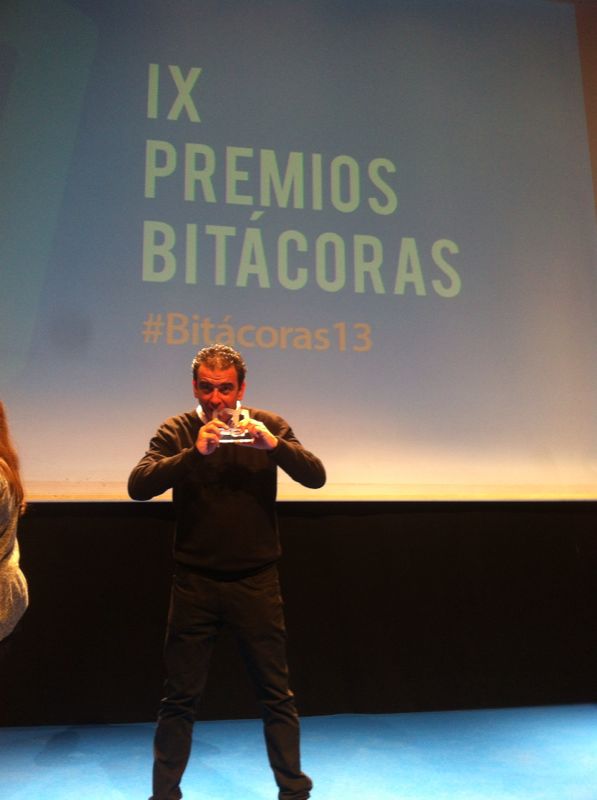 Si quieren saber lo que ocurrió en esos momentos vean este video oficial de los Premios Bitácoras (minuto 49.45 segundos). Cuando oí el nombre del blog fue una sensación extraña aunque debía darme prisa en subir al escenario. Una vez más me pasé del tiempo que tenía para decir unas palabras… pero ya conocen mi incontinencia verbal. Se me quedaron muchas cosas por decir, citar a muchos amigos que apoyan diariamente este proyecto… pero les aseguro que todo lo que dije lo hice de corazón.