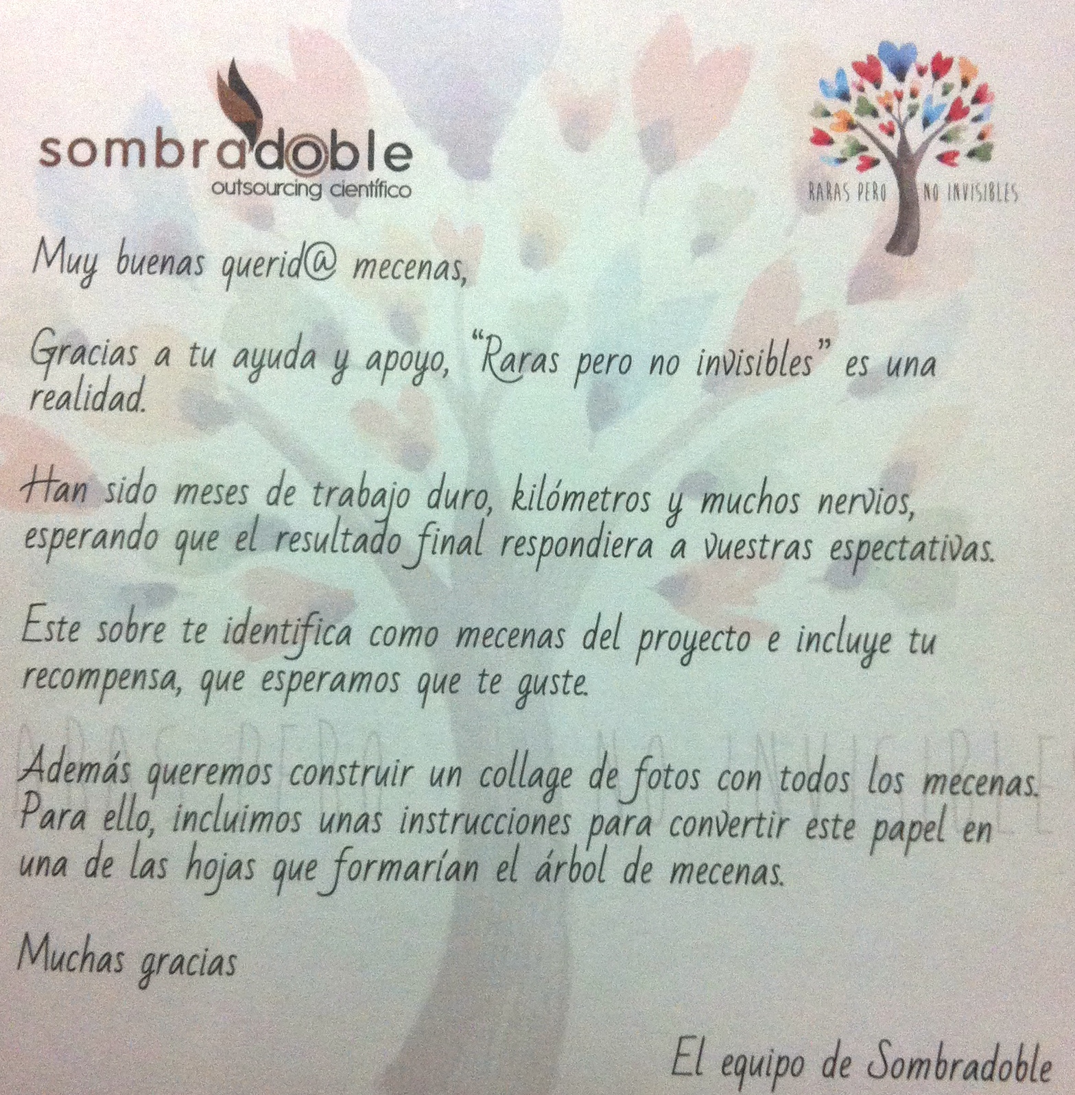 En el post titulado “Raras pero no invisibles…algo más que un post” les comenté que los impulsores de esta iniciativa habían tenido que recurrir al crowdfunding para intentar sacar adelante el proyecto, ya que las ayudas recibidas tanto de las entidades públicas como las de las empresas privadas eras insuficientes y hacían inviable que “Sombradoble” corriese a cargo de todos los gastos que conllevaba la realización del documental.