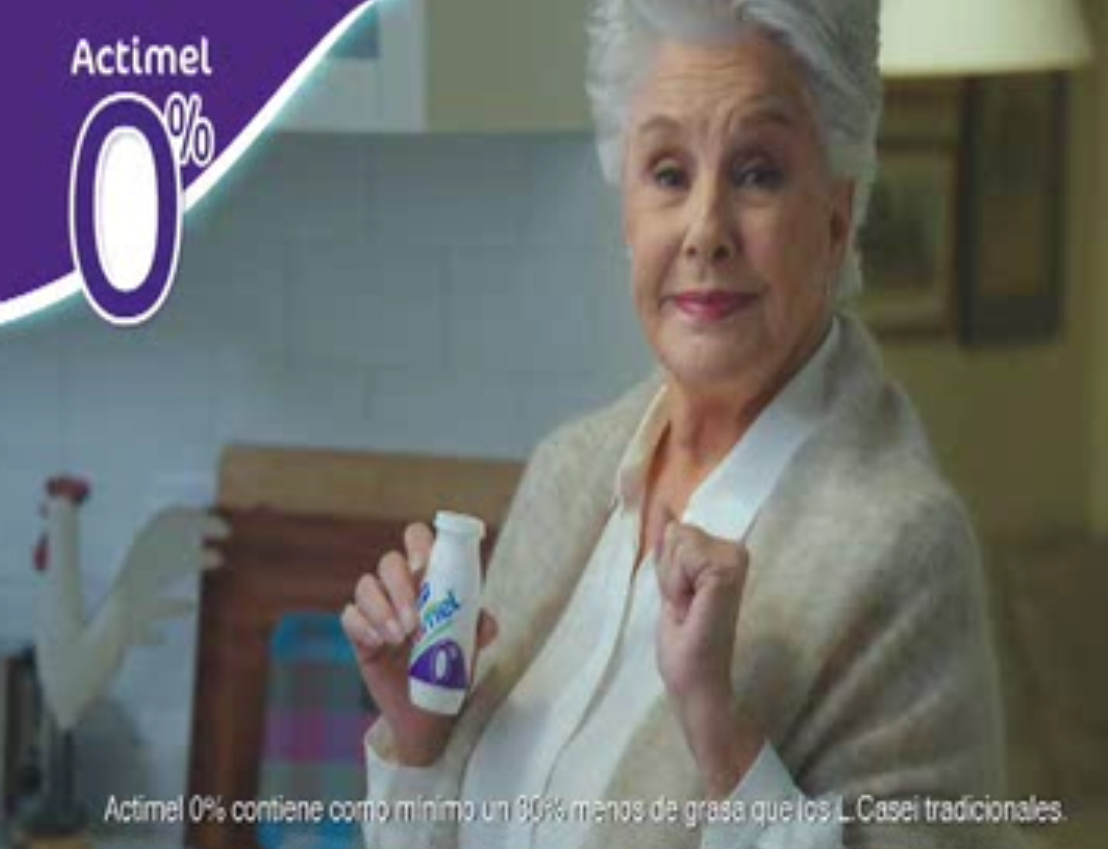 Pero esto no es lo peor. Desde hace unos pocos días Danone tiene un nuevo spot publicitario. En él se puede apreciar a la gran Lola Herrera anunciando el Actimel 0%. Pues bien, bajo la imagen de la actriz  se puede leer la siguiente frase: «Actimel 0% tiene como mínimo un 30% menos de grasa que los L. casei tradicionales».