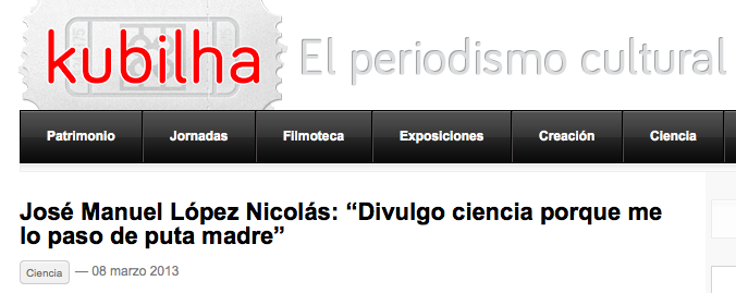 Hace unos días Álvaro Bohórquez (@BlogdeBori) me preguntó si me lo seguía pasando tan “de puta madre” divulgando la ciencia como dije en la entrevista que me hizo hace un año aproximadamente para su medio Kubilha.