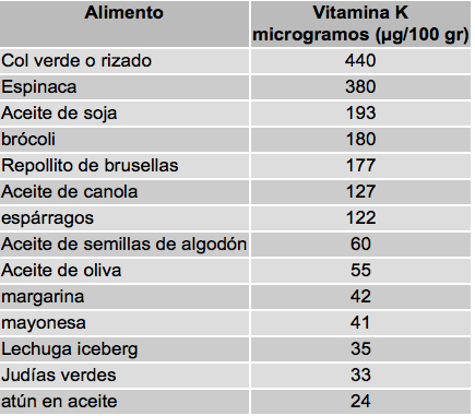 Claro que tampoco nos emocionemos con los 11 microgramos de vitamina K por cada 100 ml de la leche Pascual cuando en la alimentación tradicional tenemos una gran cantidad de productos que poseen una cantidad de micronutriente muy por encima de los 11 microgramos de vitamina K de Pascual o los ridículos 5.6 microgramos de Puleva… y si no me creen observen la siguiente tabla.