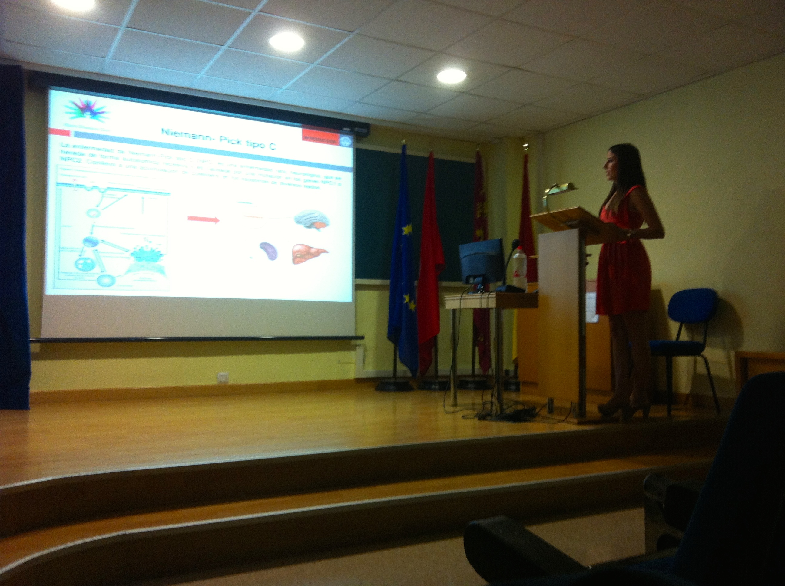 Durante este curso académico varios investigadores hemos estado estudiando el efecto del fármaco administrado a Natalia. Pues bien, tras 9 meses de investigaciones, la pasada semana María Agustina Alcaraz Gómez, alumna del Máster Universitario en Biología Molecular y Biotecnología de la Universidad de Murcia, defendió brillantemente su Tesis Fin de Master titulada “Desarrollo de un método cromatográfico para la determinación de hidroxipropil-beta-ciclodextrina en orina. Aplicación a una niña con la enfermedad rara de Niemann-Pick tipo C”.