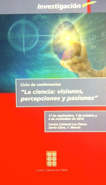 El próximo miércoles 17 de septiembre, a las 20h., se inaugura en el Centro Culturas Las Claras de Murcia el ciclo de conferencias “La ciencia: visiones, percepciones y pasiones” organizado por la Asociación de Divulgación Científica de la Región de Murcia y la Fundación CajaMurcia…a la cual quiero agradecer especialmente la entusiasta acogida que tuvo del proyecto.