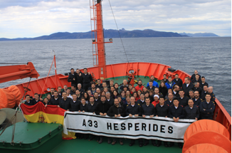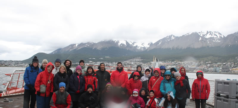 Imagen 1. Todo el equipo científico de PEGASO zarpando del puerto de Ushuaia, 02/01/2015 (Fuente: http://www.icm.csic.es/icmdivulga/ca/campana-pegaso-01.htm).