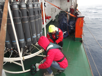 En cuanto a los ciclos día-noche, consisten en 36 horas de trabajo ininterrumpido durante las cuales se miden parámetros tanto oceanográficos como atmosféricos, sirviéndose de numerosos instrumentos. Imaginaos lo que son 36 horas casi sin parar de trabajar, descansando intervalos de pocas horas, sobre un suelo que se mueve y a una temperatura rondando los 0ºC… ¡Muestreando agua que a veces llega a -1ºC!