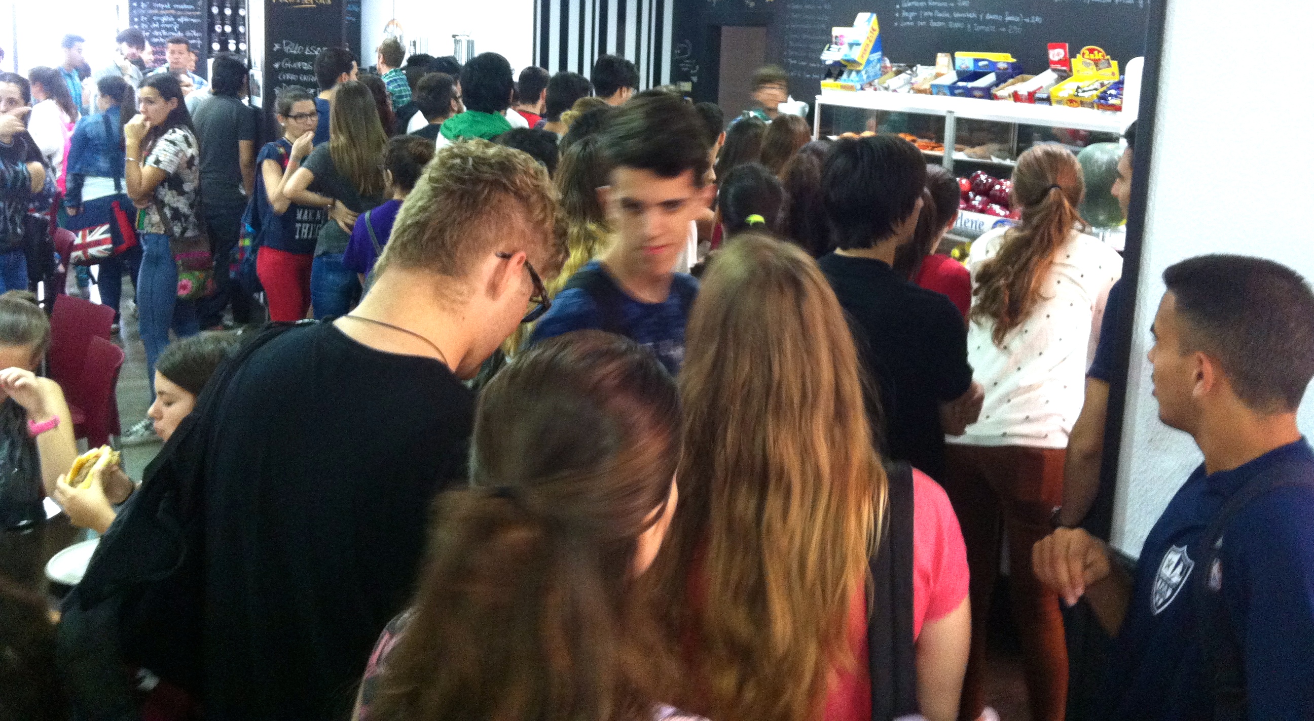 3) Las cafeterías no son las barras de la plaza de toros donde se celebra un festival de música alternativa. Tenemos una forma de organizarnos. Funciona así: el que llega antes tiene prioridad. Pide, paga, come y se va. Mientras no te toque esperarás pacientemente tu turno. Los codazos, gritos y demás están mal vistos en la universidad. Bueno, hay otro tipo de codazos que son habituales entre miembros de la comunidad universitaria pero esos, por ahora, no te interesan.