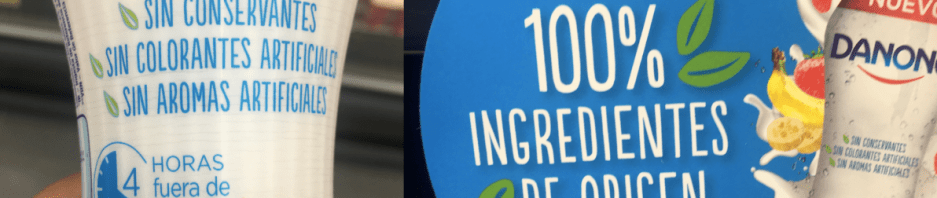 Pero reconozco que me aburre seguir escribiendo sobre los eslóganes que usan productos como el de la nueva bebida de Danone. Son casi 7 los años que llevo denunciando la quimiofobia en posts, libros, conferencias, etc. por lo que el tema me motiva poco. Y entonces…¿por qué escribo hoy de nuevo sobre ellos? Porque hay que seguir denunciando estas actitudes hasta que desaparezcan y, sobre todo, porque en el caso de la bebida de Danone tras los eslóganes “Sin Conservantes”, “Son colorantes artificiales”, “Sin aromas artificiales” y “100% ingredientes de origen natural” se esconde la verdadera realidad de este producto: una, desde mi punto de vista, nada recomendable composición nutricional. Atentos.