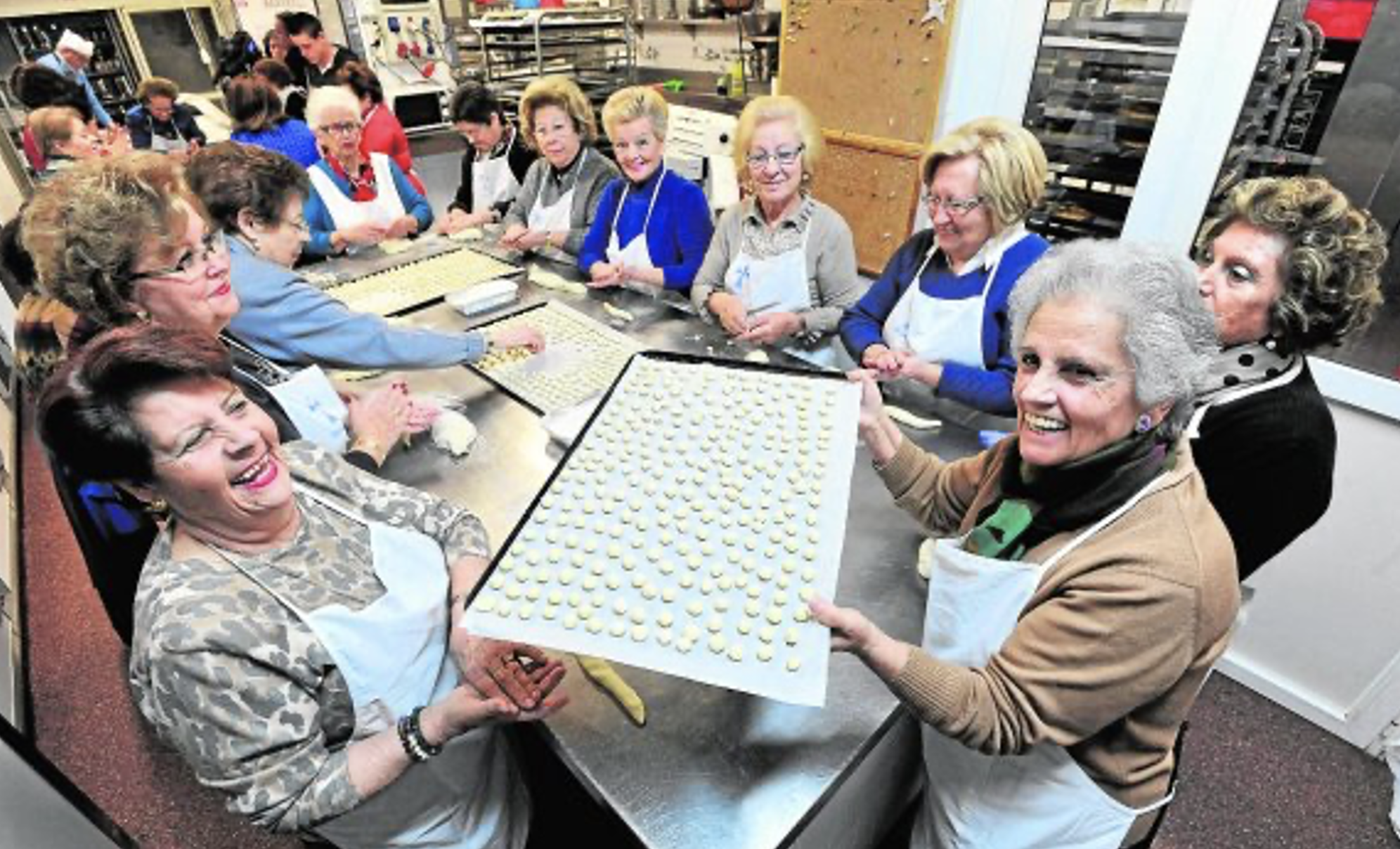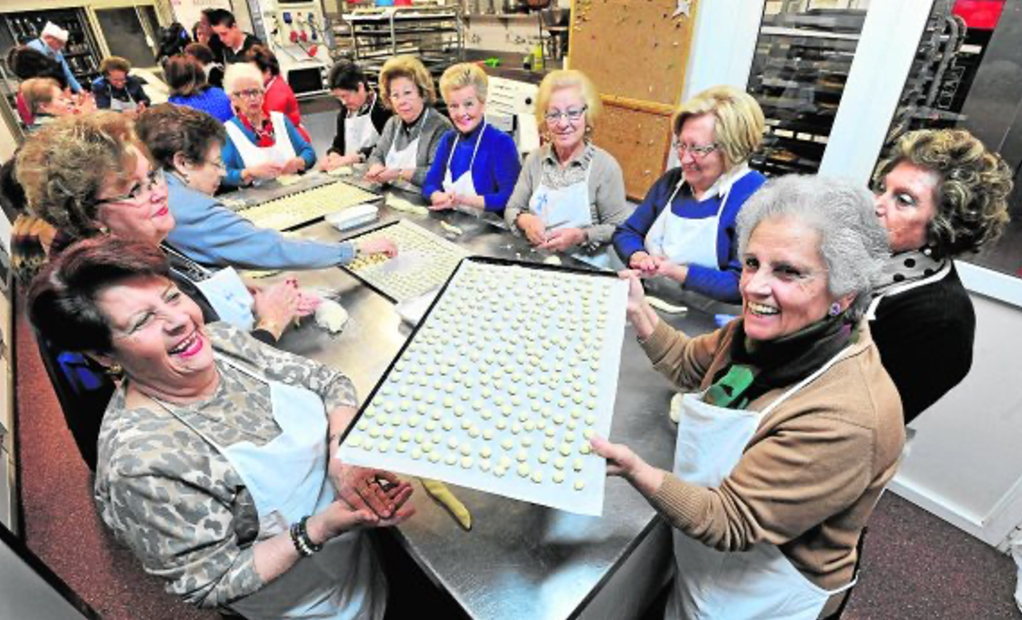 Llega el momento de dividir la masa. En mi querido barrio de San Antón de Murcia un grupo de voluntarias cogen pellizcos de masa y los “bolean” para que queden bien redondos. El objetivo del reposo es que sea más fácil manipular el gluten durante el moldeado, la fase en la que se le da la forma casi definitiva a nuestro particular panecillo.