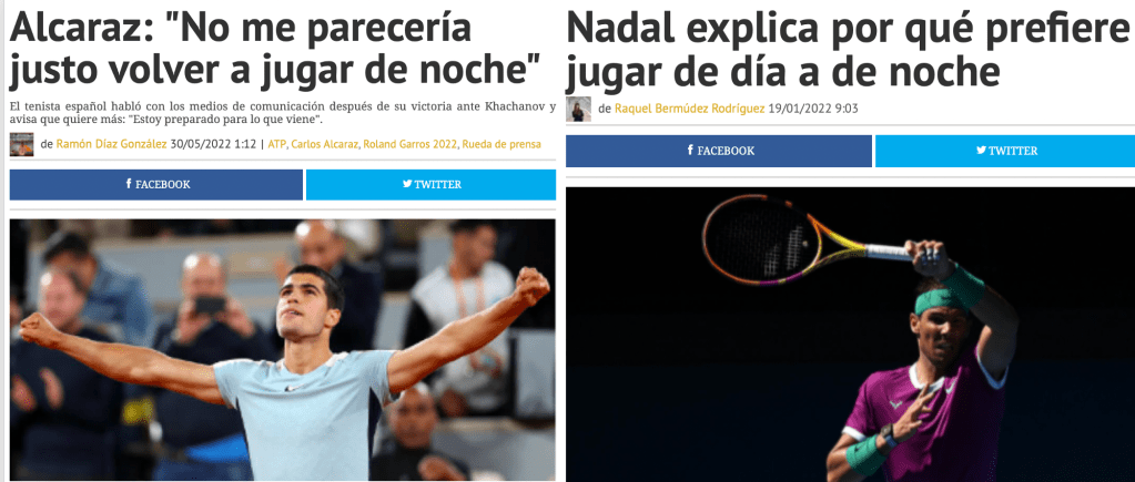 Esta es la razón por la que todos los años se desata una gran polémica sobre el horario de los partidos. Los tenistas españoles insisten en jugar por la mañana (su golpe liftado es más efectivo al botar más la pelota) y tenistas como Djokovic o Tsitsipas prefieren jugar por la noche (su golpe plano se beneficia del bajo bote de la pelota) . Aunque a la vista de muchos aficionados esto parece un capricho, acabo de mostrarles hay razones científicas que justifican estas preferencias.