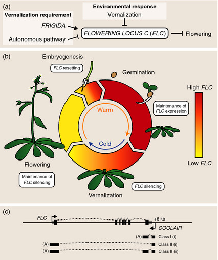5. El frío. Muchas especies vegetales comienzan la floración tras haber estado previamente expuesta a un periodo de frío. El proceso por el cual las plantas inician su floración tras una exposición prolongada a bajas temperaturas se llama vernalización. Esta no “obliga” a la planta a florecer, pero sí se lo permite cuando el resto de condiciones son idóneas. ¿Por qué el frío es tan importante? Entre otras cosas porque las bajas temperaturas disparan una serie de reacciones que inhiben un gen importantísimo llamado FLC. Este gen es el responsable de expresar una proteína que impide la floración. Gracias al frío se “fastidia” el gen FLC y se produce la floración.